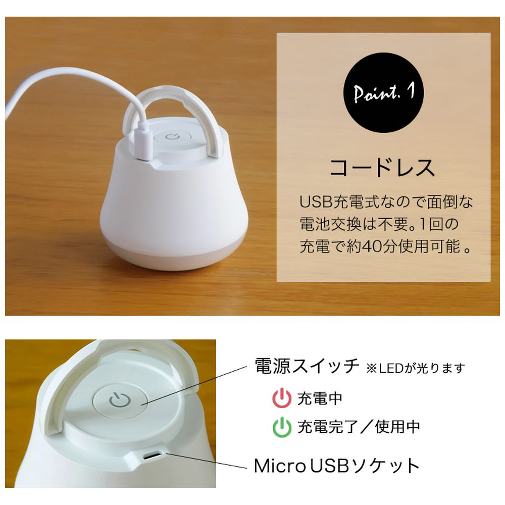 シンプルでインテリアに映えるデザイン。便利なUSB充電式。
