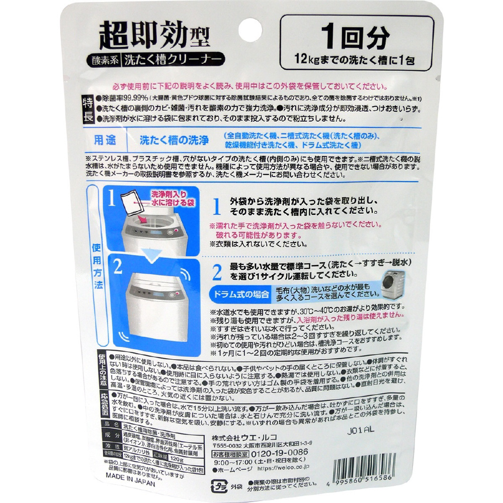 | 商品名 | 超即効型洗たく槽クリーナー 120g [ドラム式・縦型洗濯機対応] |