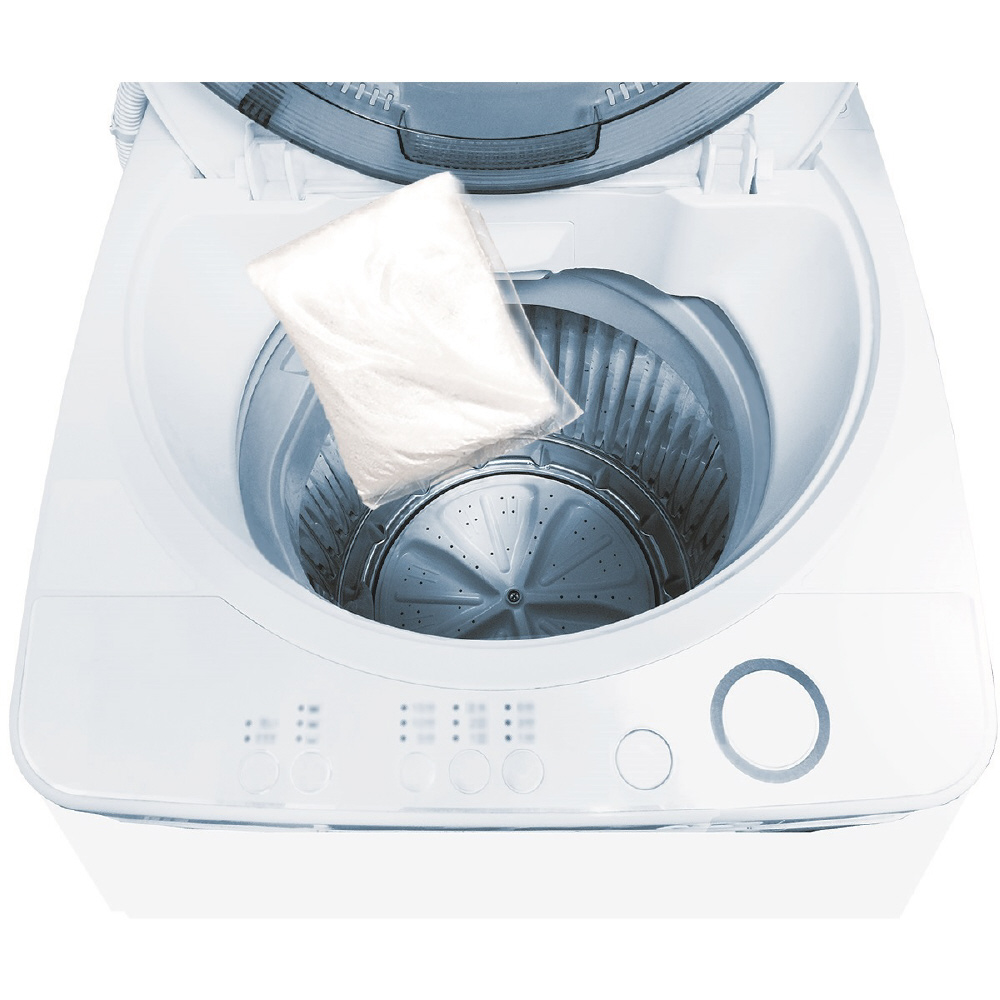 (1)外袋から洗浄剤が入った袋を取り出し、そのまま洗たく槽内に入れてください。