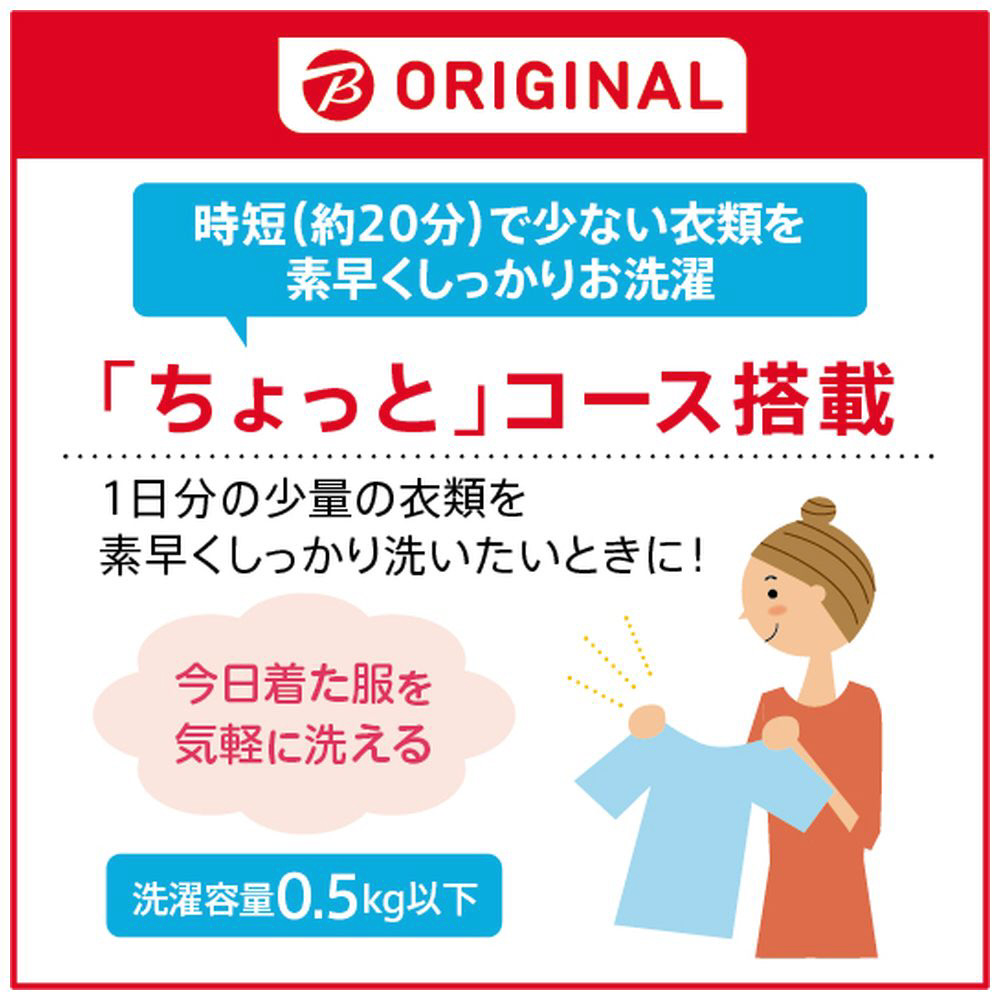 少量の衣類(0.5kg以下)なら時短で洗濯するから、おでかけ前でも気軽に洗えます。