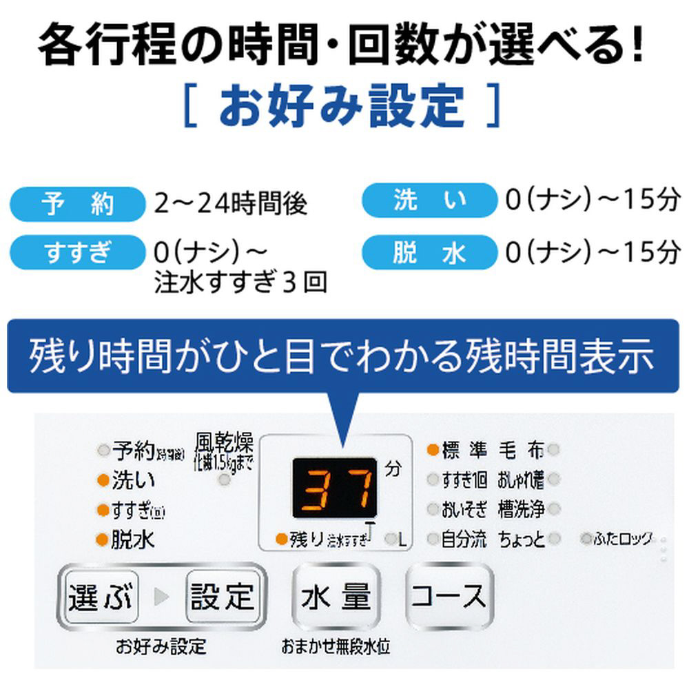 お洗濯が終わるまでの残り時間をデジタル表示します。