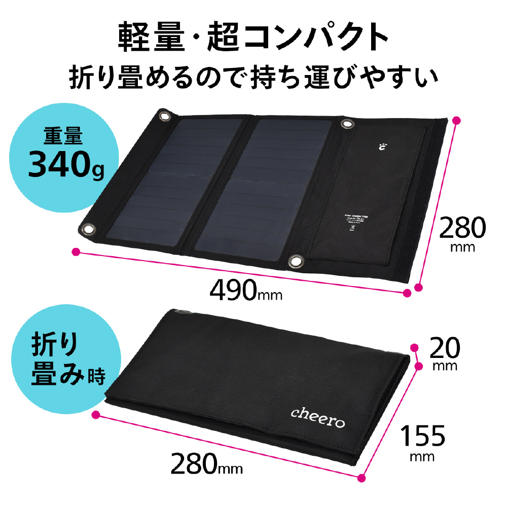 cheero Solar Charger 14W ソーラー充電器 折り畳み CHE-331