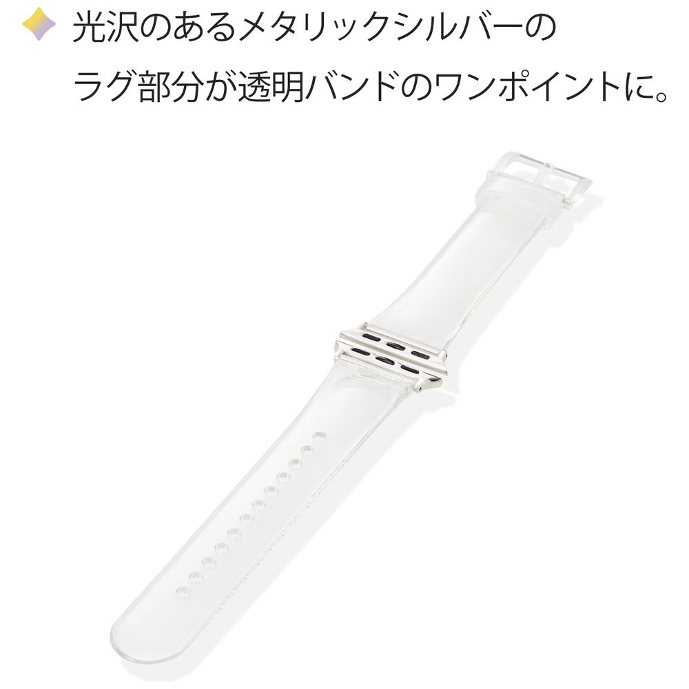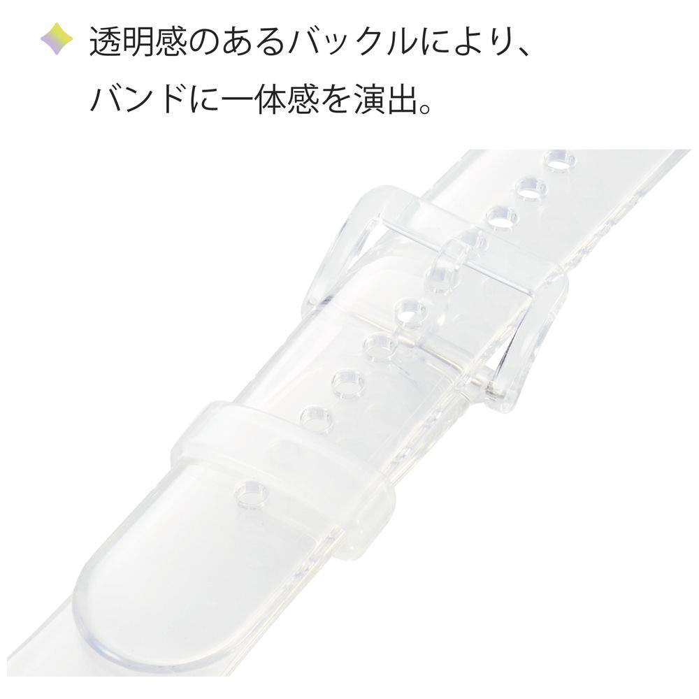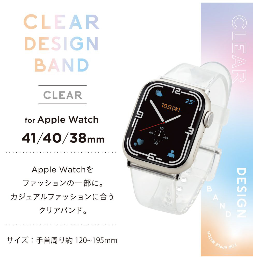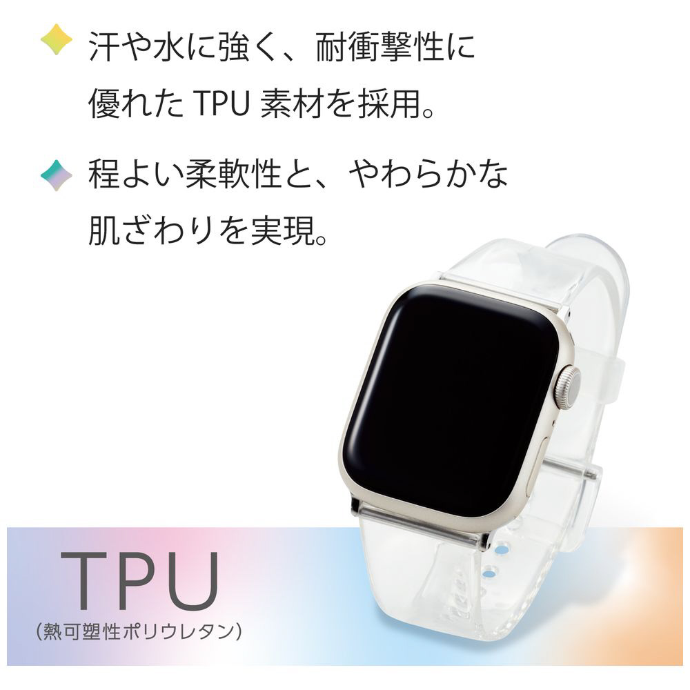 程よい柔らかさで装着感が良く、透明感が高いTPU素材を採用し、カジュアルファッションにコーディネートしやすいApple Watch Series 8、7 [41mm]、Apple Watch SE 第2世代、SE 第1世代、Series 6、5、4 [40mm]、Apple Watch Series 3、2、1 [38mm]用クリアバンドです。