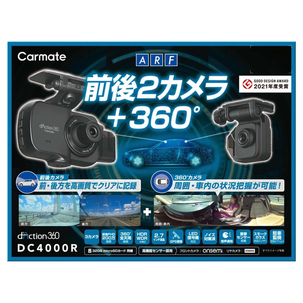 ダクション360D 前後2カメラ+360°カメラ 3カメラ搭載高機能ドライブレコーダー DC4000R [前後カメラ対応 /Full HD(200万画素)]