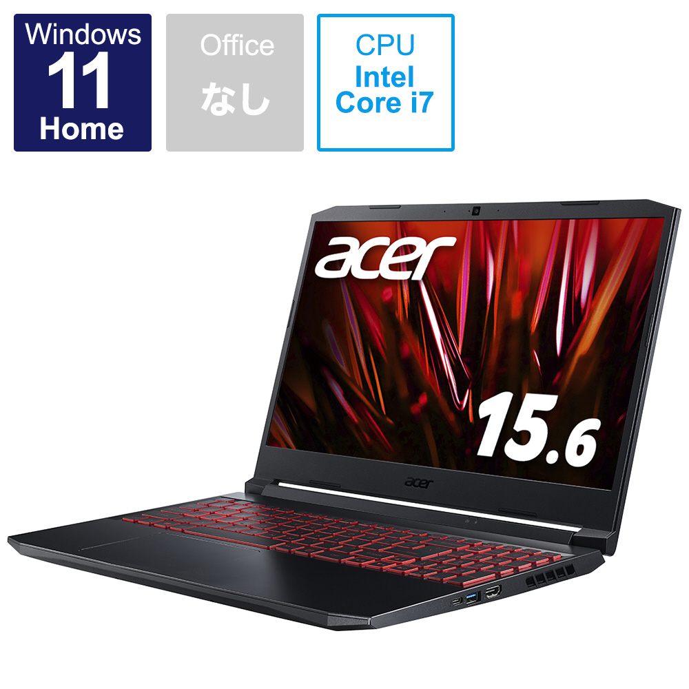 AN515-57-WF76Y5 ゲーミングノートパソコン Nitro 5 シェールブラック [15.6型 /Windows11 Home /intel Core i7 /メモリ:16GB /SSD:512GB /無し /日本語版キーボード /2022年1月モデル]
