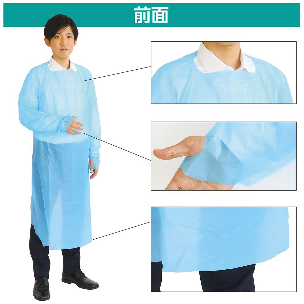 防水性の高いポリエチレン製の使い捨てエプロンです。