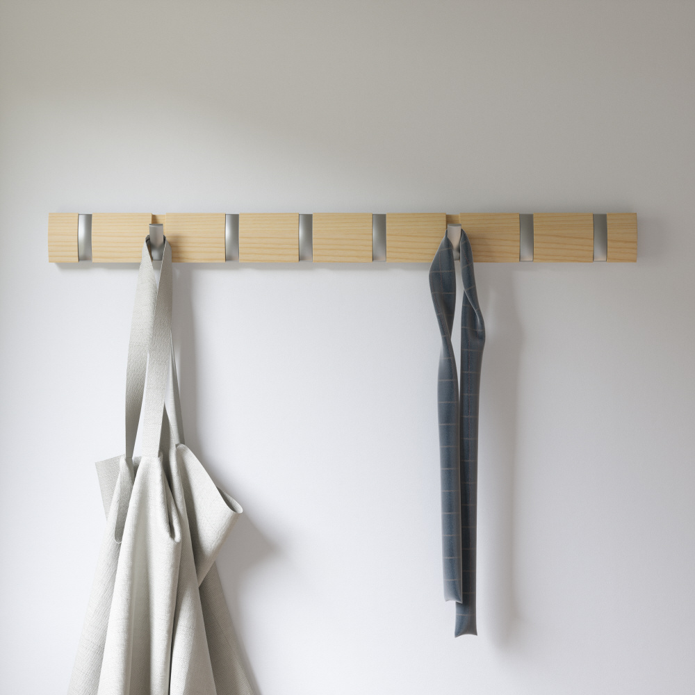 使用しない時はフックを収納できシンプルなデザインでお部屋をモダンに演出するフックです。様々な場所で吊り下げスペースとして活躍します。