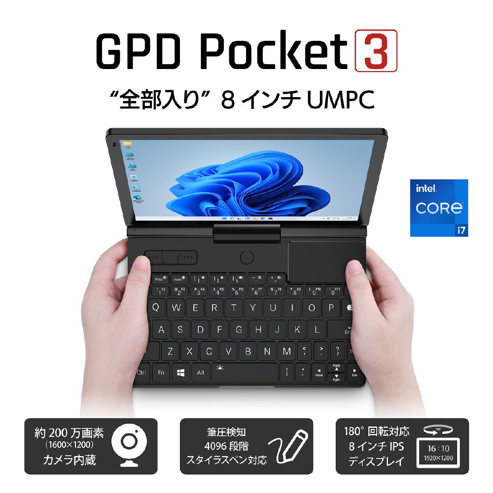 商品名 モバイルパソコン GPD Pocket 3 (1195G7) [8.0型 /Windows10 Home /intel Core i7 /メモリ:16GB /SSD:1TB /無し /2022年1月モデル]