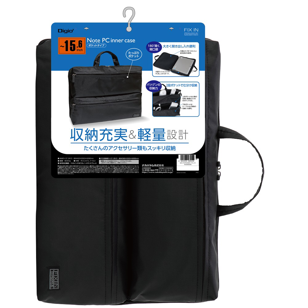 ノートパソコン対応 [〜15.6インチ] インナーケース ポケットタイプ ブラック SZC-FIXP006BK 【864】
