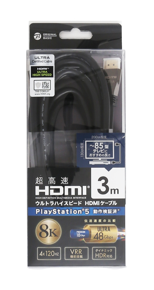 OS-HDM1UH300BK 3.0m HDMIケーブル/Ver2.1 ウルトラHDMIケーブル METAL [3m /HDMI⇔HDMI /イーサネット対応] 【864】
