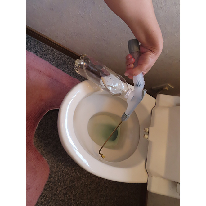 ペットボトルを再利用!90度に曲がったロングノズルでトイレのフチに狙いを定めて快適おそうじ。