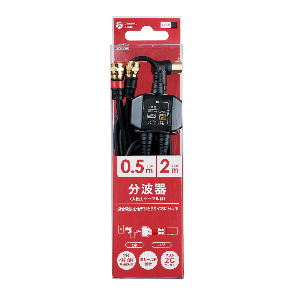 4K8K対応アンテナ分波器 ケーブル付(F(ネジ)0.5m-L(L字)2m) OB-TSFL2C20BK