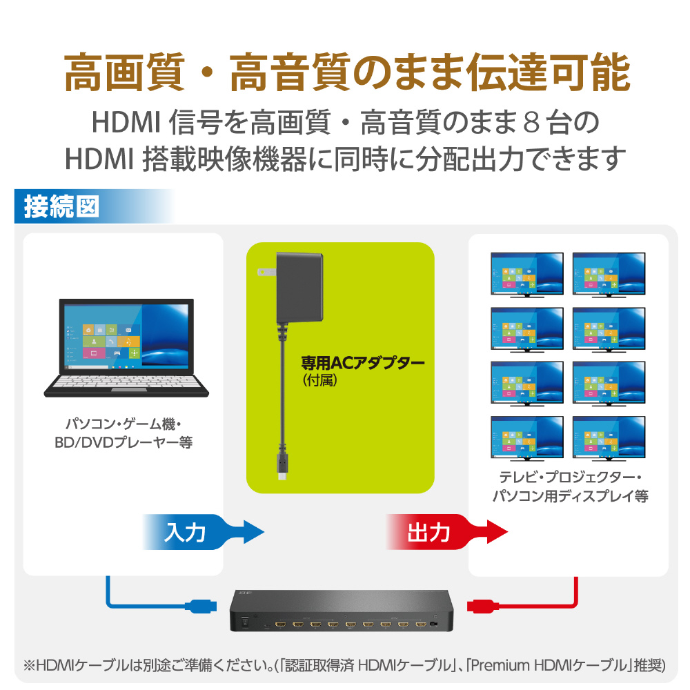 HDMI分配器 ブラック VSP-HDP18BK [1入力 /8出力 /4K対応 /手動]