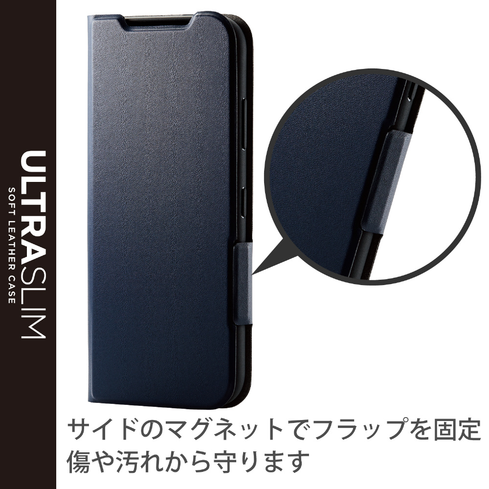 あんしんスマホ(KY-51B)/レザーケース/手帳型/UltraSlim/薄型/磁石付き/ネイビー PM-K211PLFUNV