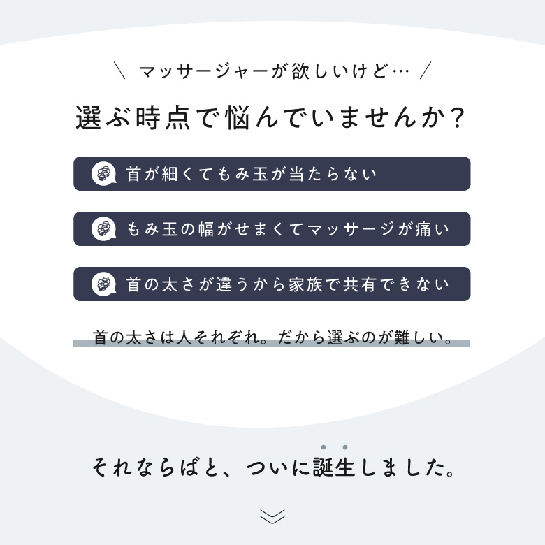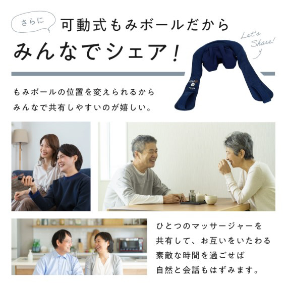 手軽で、自由に使えるコードレス!「可動式もみボール」で首にフィットししぶといコリをもみほぐし!