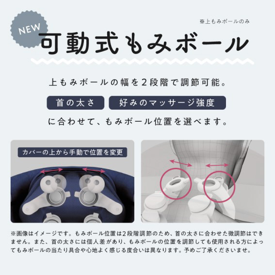 可動式のもみボールは首のサイズに合わせて調節でき、しっかりフィットしながらコリをしっかりもみほぐします。