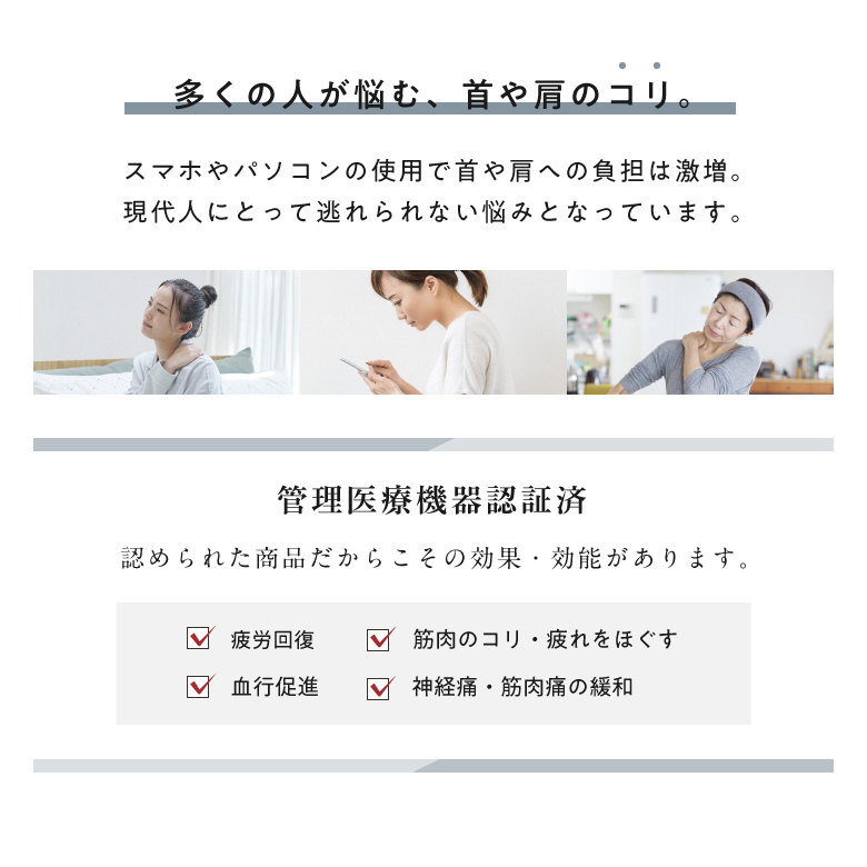 また、3種類のモードを搭載し、気分やコリに合わせて使い分けできます。
