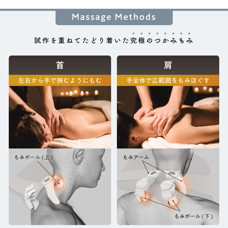 さらにもみボールに加えもみアームを搭載しているので、まるで手もみのようなマッサージ感を味わうことができます。