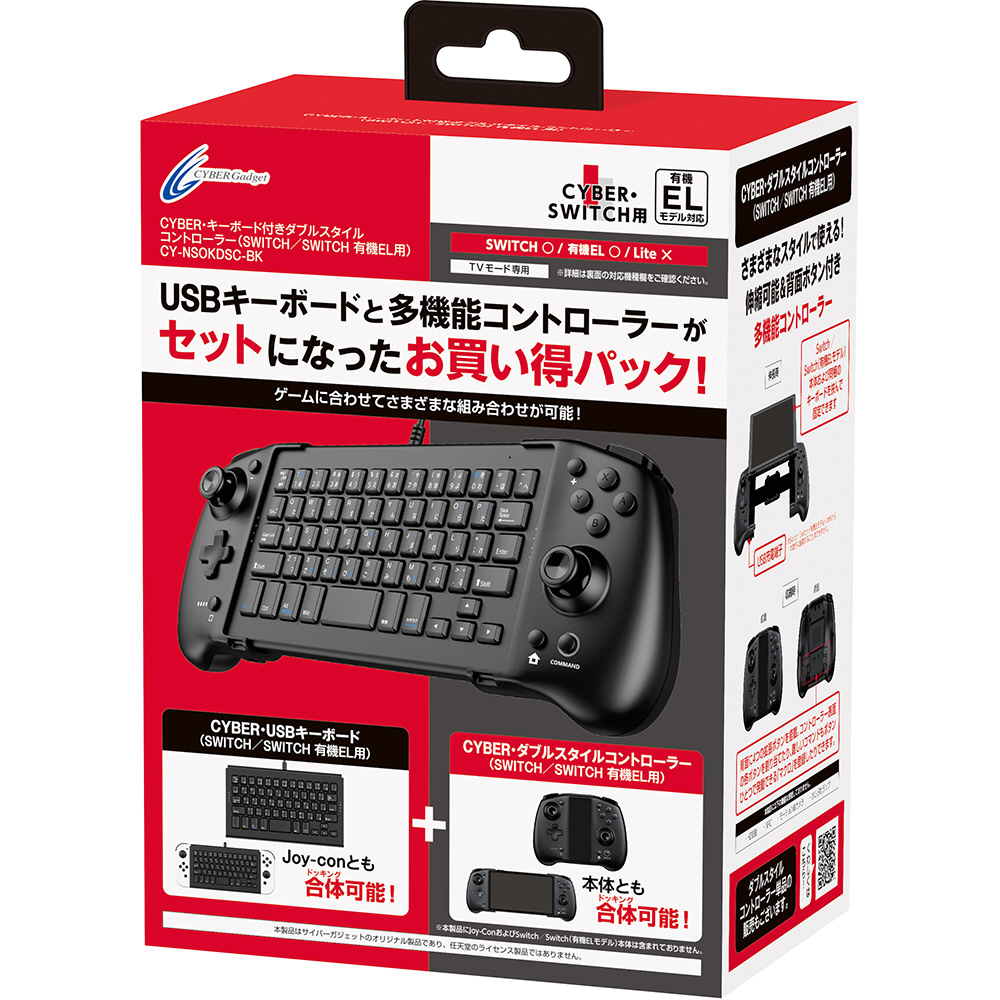 SWITCH/SWITCH有機EL用キーボード付きダブルスタイルコントローラー ブラック CY-NSOKDSC-BK 【864】