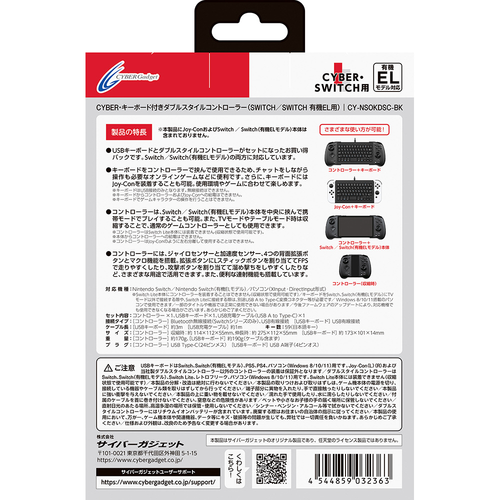 | 商品名 | SWITCH/SWITCH有機EL用キーボード付きダブルスタイルコントローラー ブラック CY-NSOKDSC-BK 【864】 |