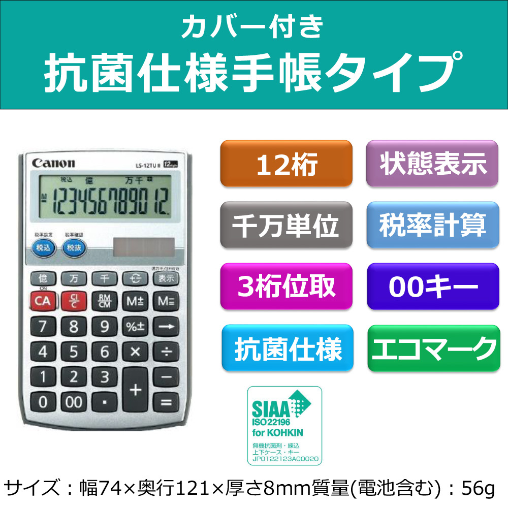 キヤノン製手帳型電卓。抗菌仕様。
