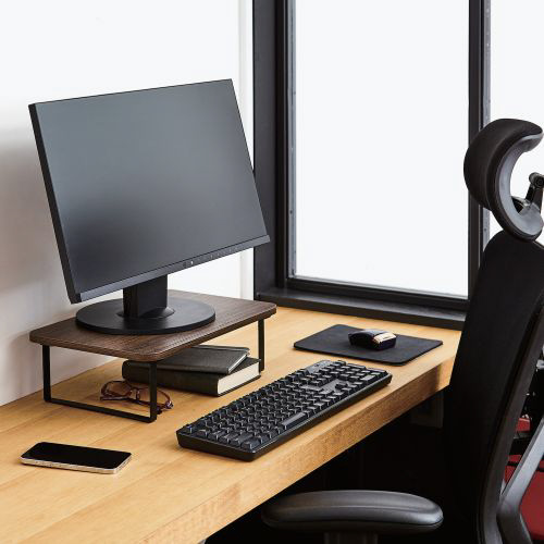 液晶ディスプレイの高さを12cm上げ、目線を上げることでPC作業時の姿勢を改善することができる木製のディスプレイ台です。横幅38cmの省スペースタイプです。