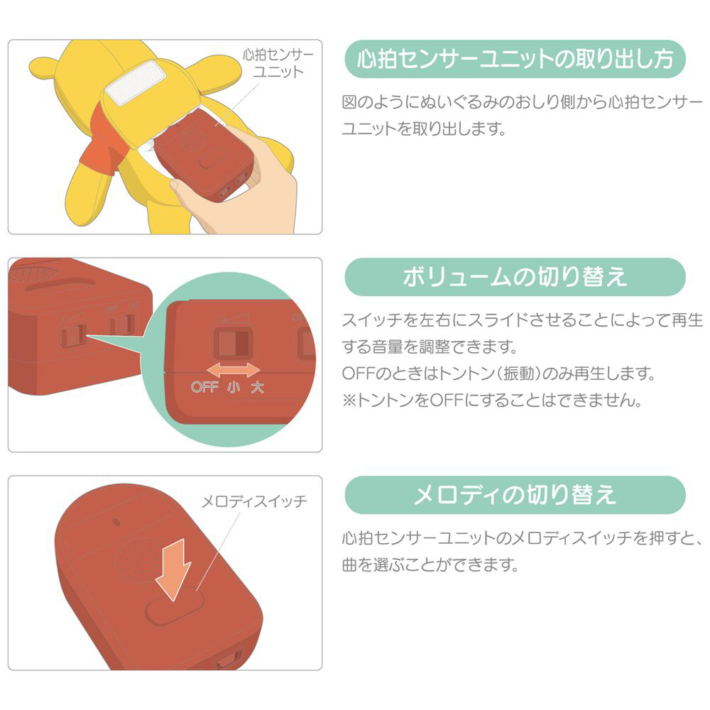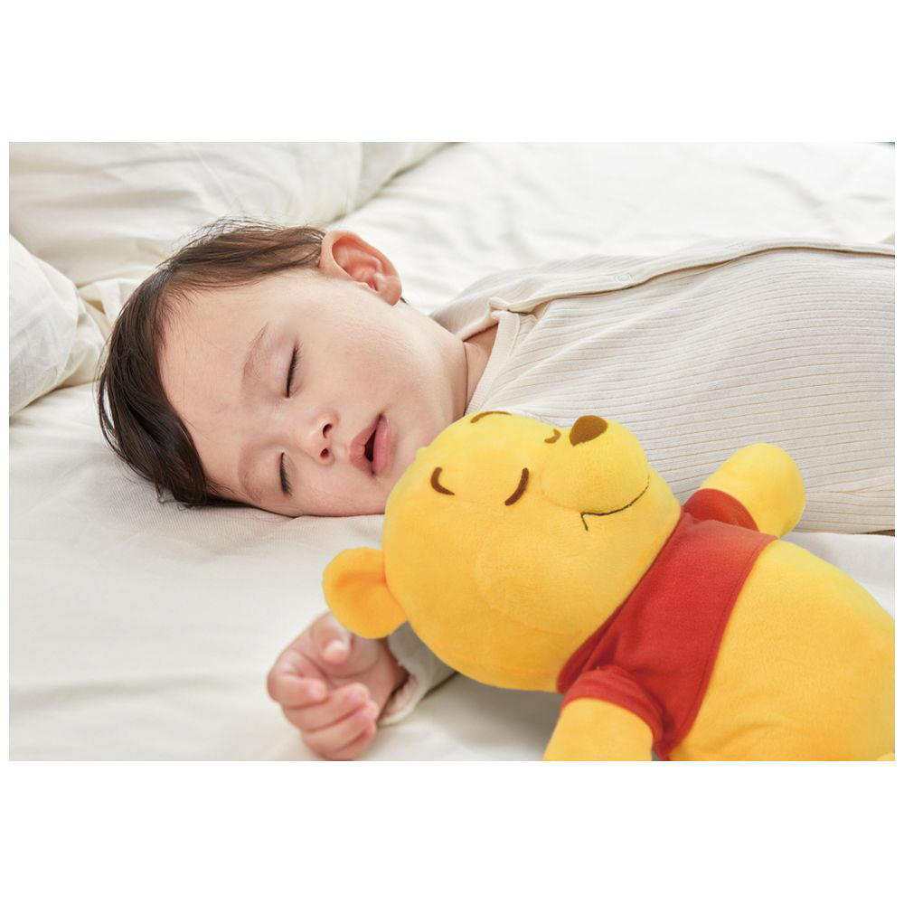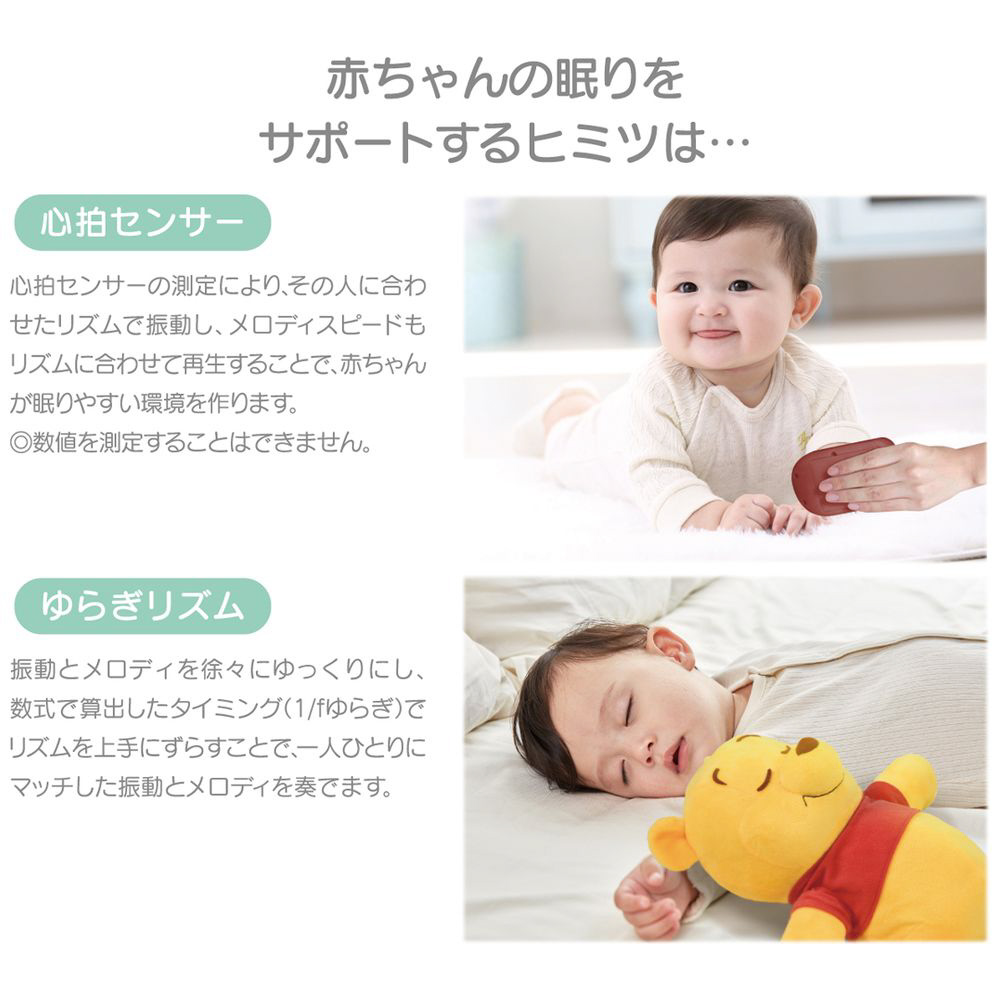 一人ひとりに合ったメロディと振動で赤ちゃんの眠りをサポートする、くまのプーさんのぬいぐるみです。