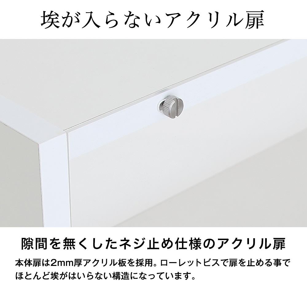 隙間を無くしたネジ止め仕様の埃が入らないアクリル扉。