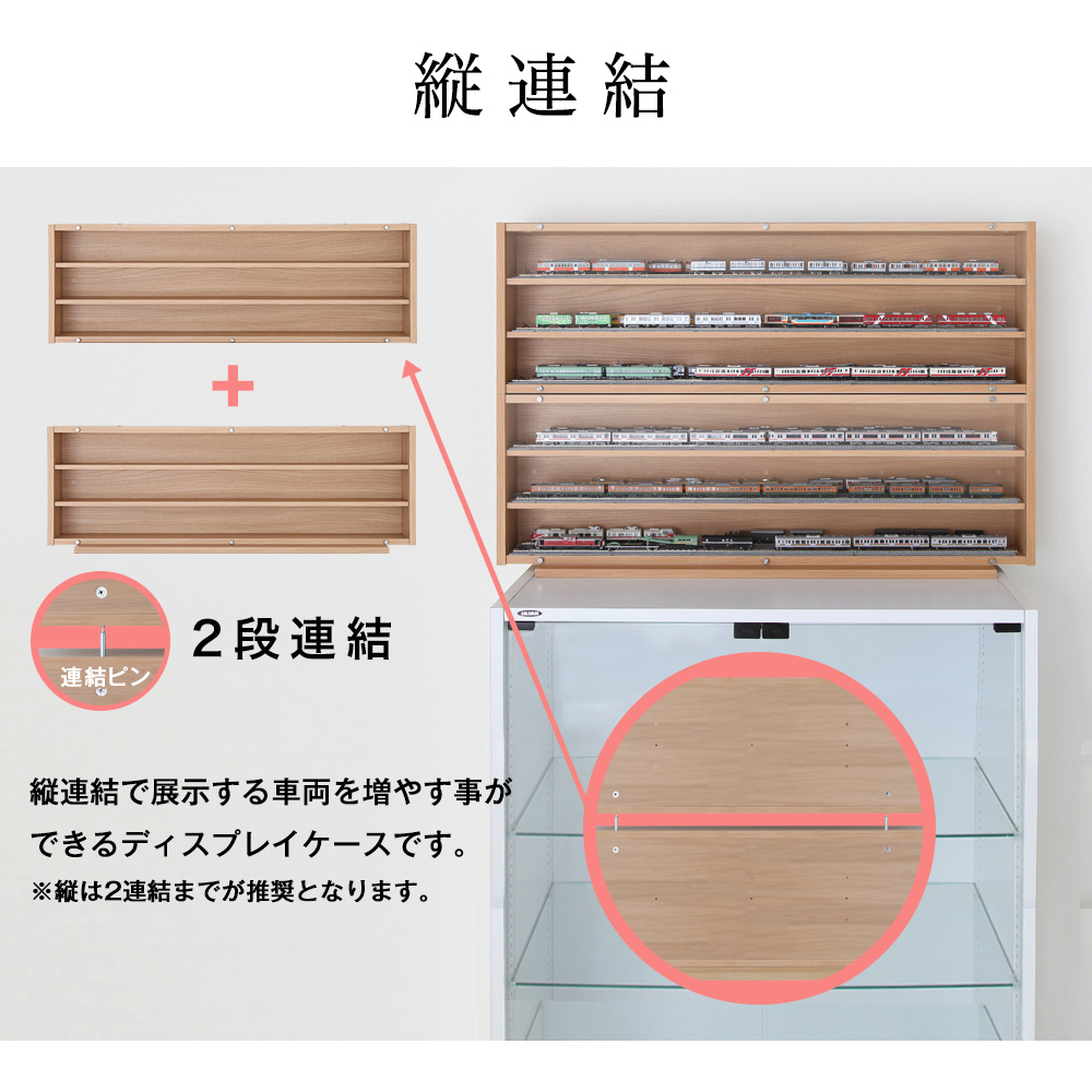 鉄道模型ディスプレイケースは、本体同士を横・縦連結できます。車両編成・設置場所に合わせて自由な組み合せができる鉄道模型専用のコレクションケースです。