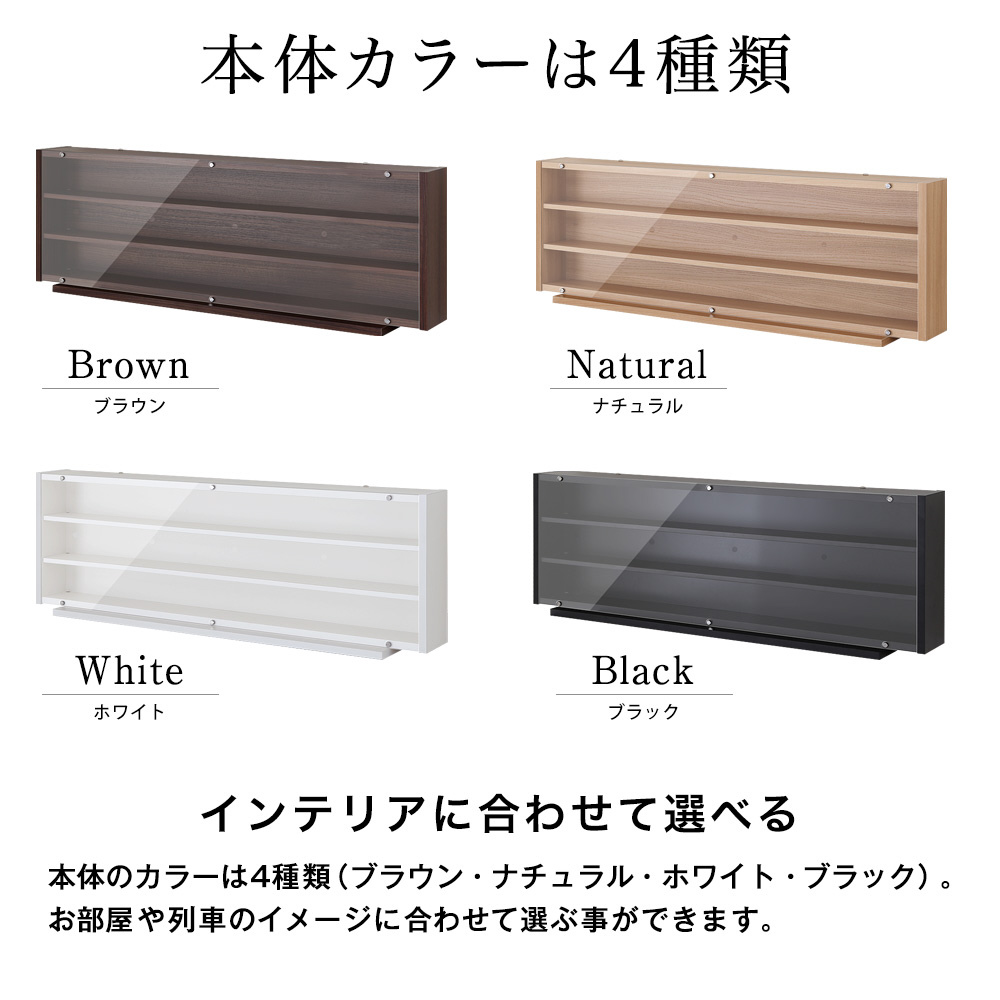 前面をアクリル扉&ローレットビス仕様で鉄道の編成を遮る事なくコレクションをレイアウトできる鉄道模型ディスプレイケース。Nゲージ、HOゲージ対応の鉄道模型専用棚コレクションケースです。