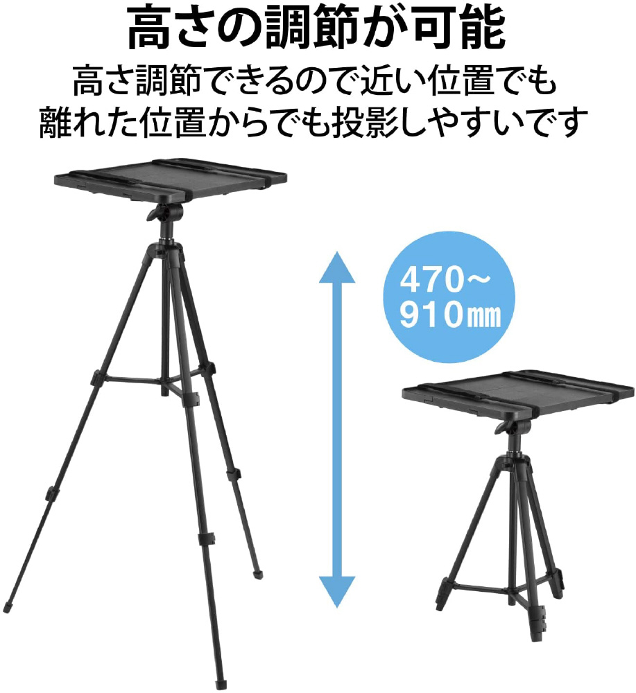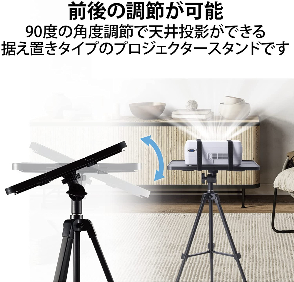 コンパクトに持ち運びができてアウトドアでも活躍!付属のバンドで機器を固定でき、高さ調節、角度調節が可能な、収納ケース付き、伸縮ロングタイプのプロジェクタースタンドです。