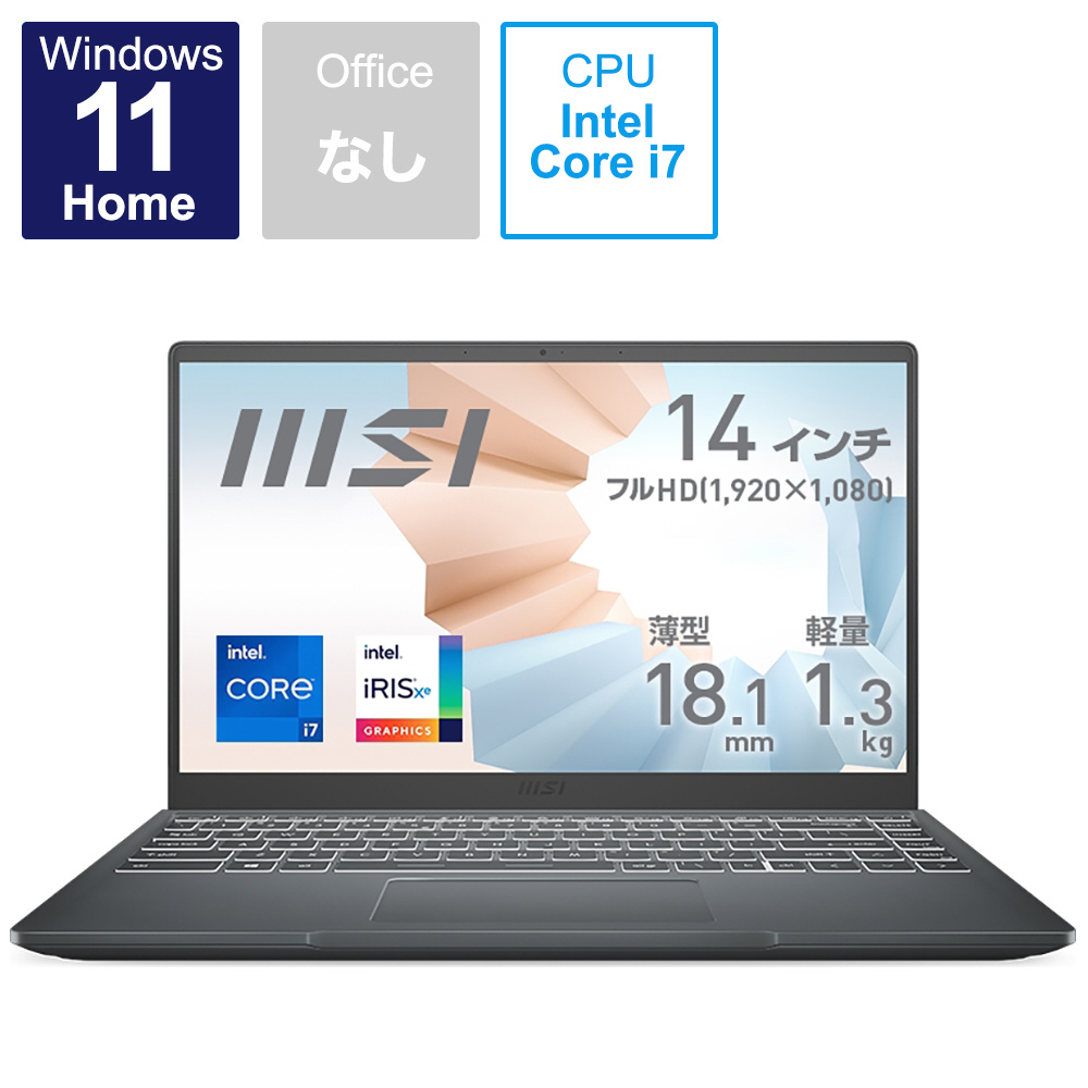 ノートパソコン Modern 14 B11S カーボングレイ Modern-14-B11MOU-894JP [14.0型 /Windows11 Home /intel Core i7 /メモリ:16GB /SSD:512GB /2022年2月モデル]