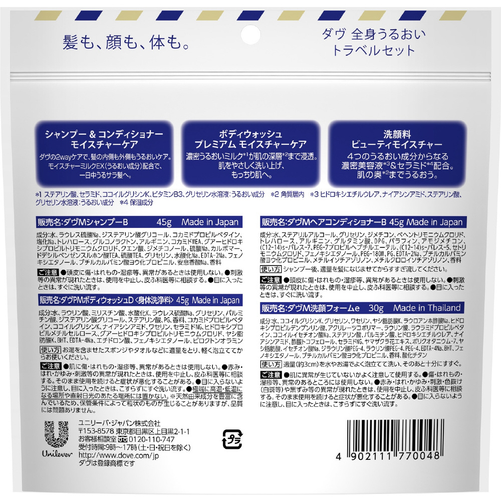 髪も体も顔もダヴ全身うるおいセット。旅行、入院等に。