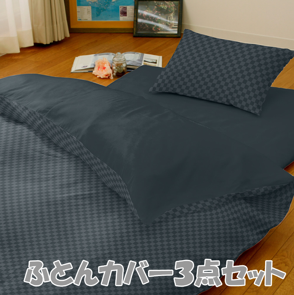 メリーナイト カバーリング3点セット布団用 市松柄 シングルロング ブラック L3-300-01 ブラック L3-300-01 [シングルサイズ]