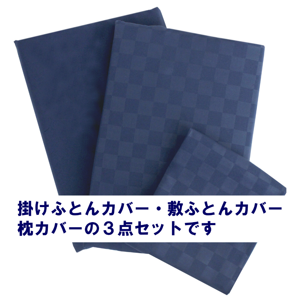 メリーナイト カバーリング3点セット布団用 市松柄 シングルロング ネイビー L3-300-72 ネイビー L3-300-72 [シングルサイズ]
