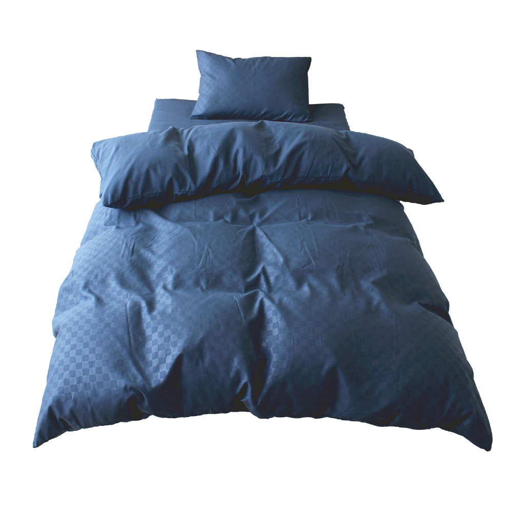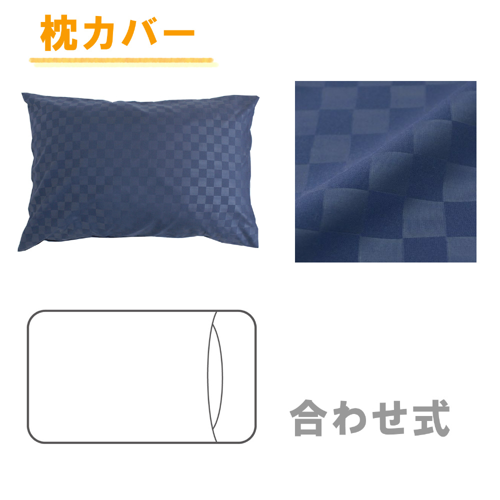 素材:ポリエステル100% 掛ふとんカバー(150×210cm 表:市松柄 裏:無地 YKK210mファスナー使用 8ヶ所ヒモ付き) 敷ふとんカバー(105×215cm 両面:無地 YKK210mファスナー使用) 枕カバー(43cm×63cm 両面:市松柄 あわせ式)