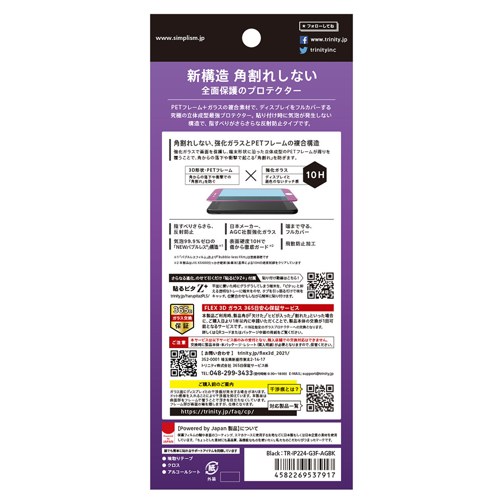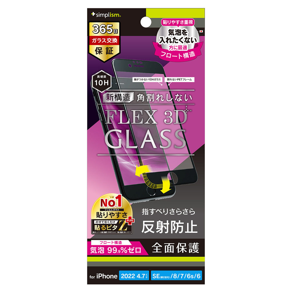 | 商品名 | iPhoneSE(第3・2世代)/8/7 FLEX3D フレームガラス 反射防止 TR-IP224-G3F-AGBK 【864】 |