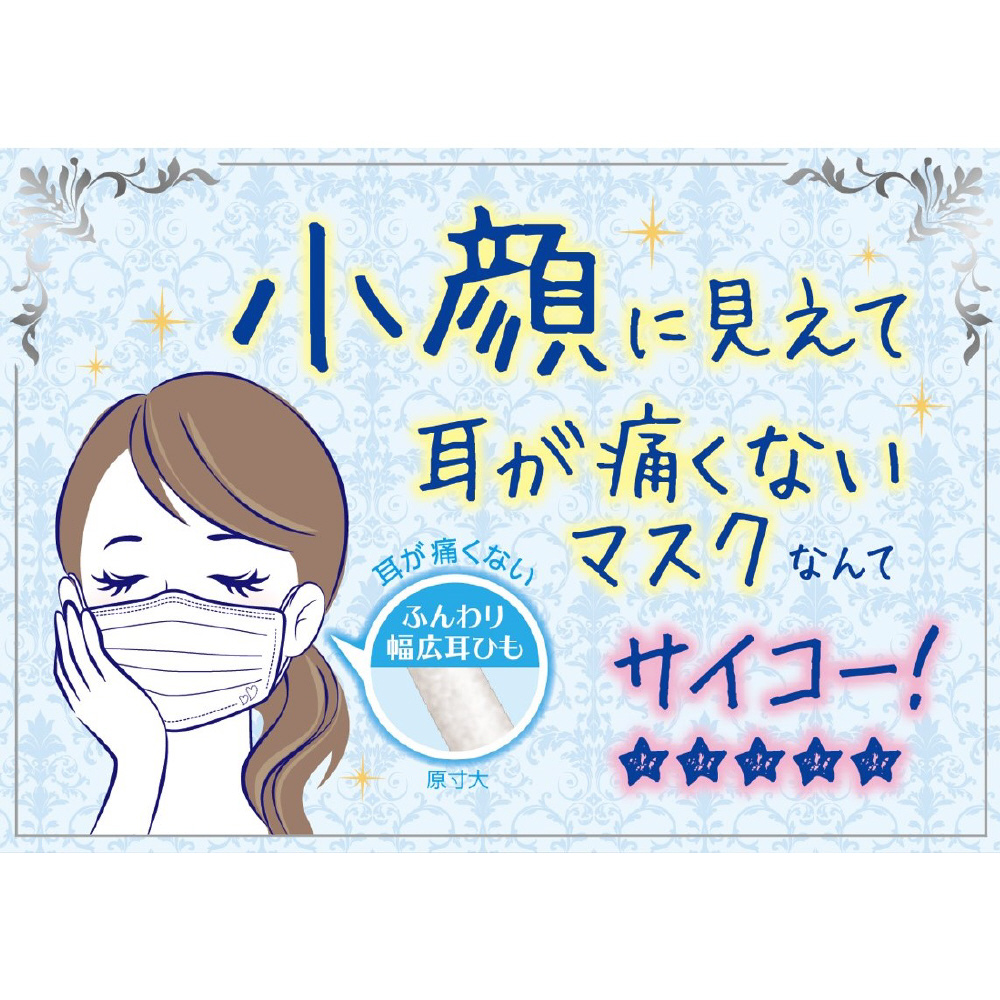 ●ふんわり幅広耳ひもで耳が痛くない。