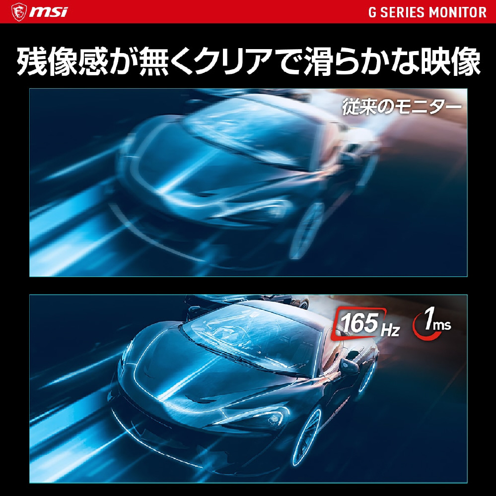 ■リフレッシュレート165Hz、応答速度1msでクリアで滑らかな描写が可能