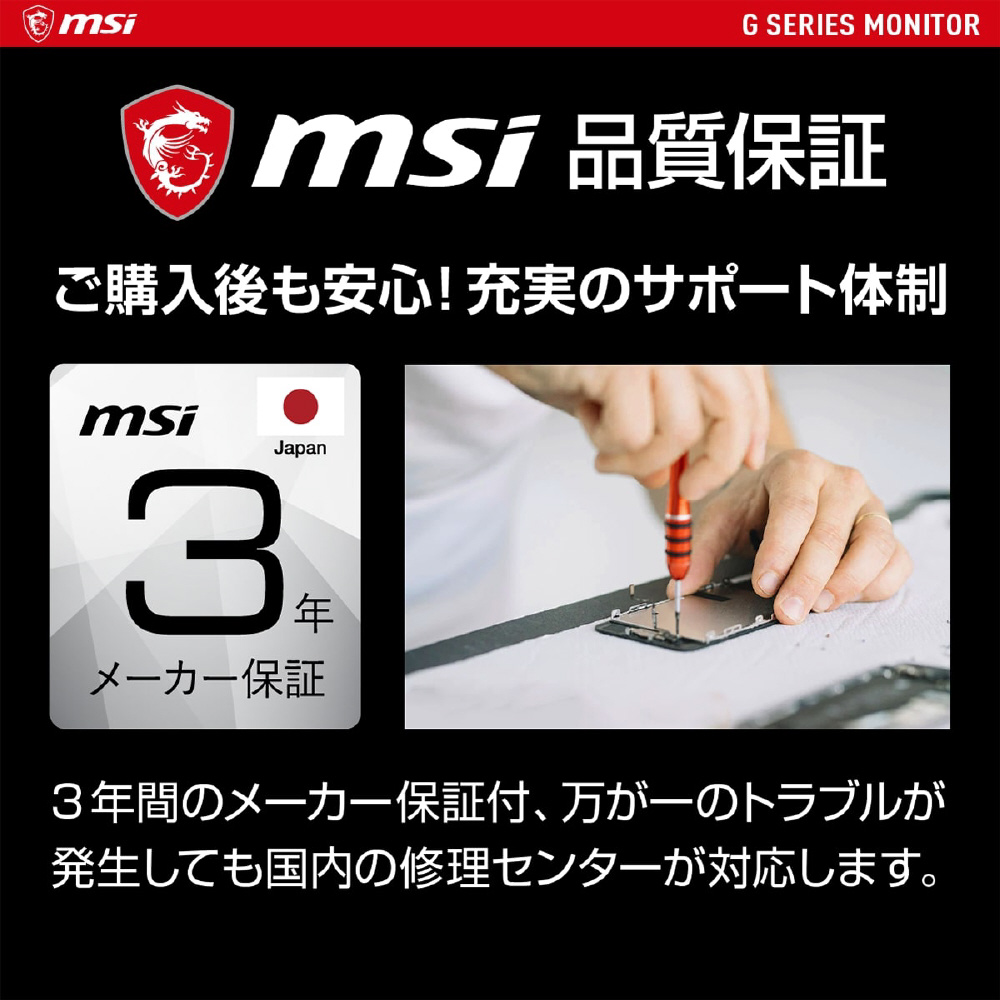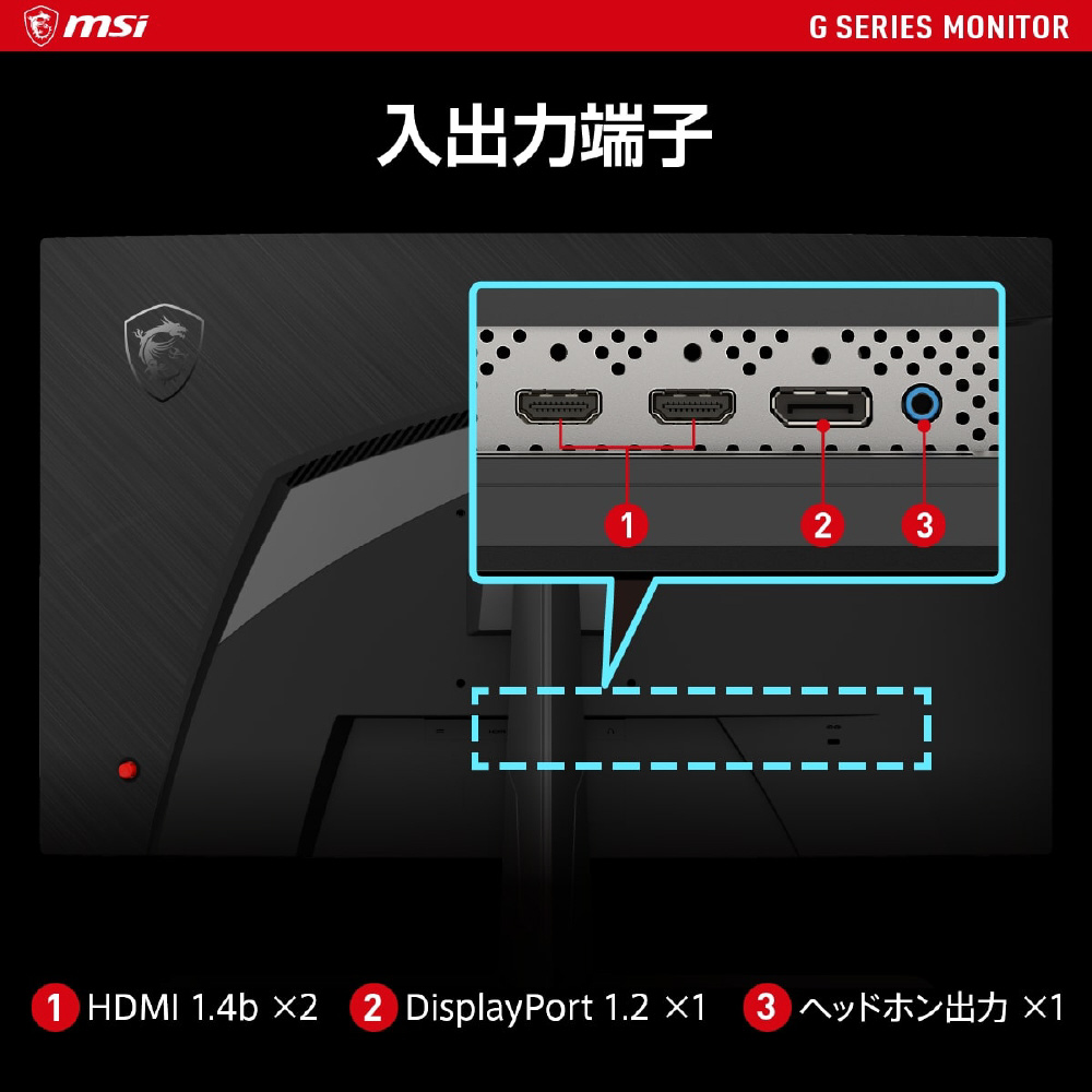 | 垂直走査周波数(Hz) | [走査周波数]53 〜 183 KHz(H) / 48 〜 165 Hz(V) [リフレッシュレート]165Hz(DP:165Hz、HDMI:144Hz) |