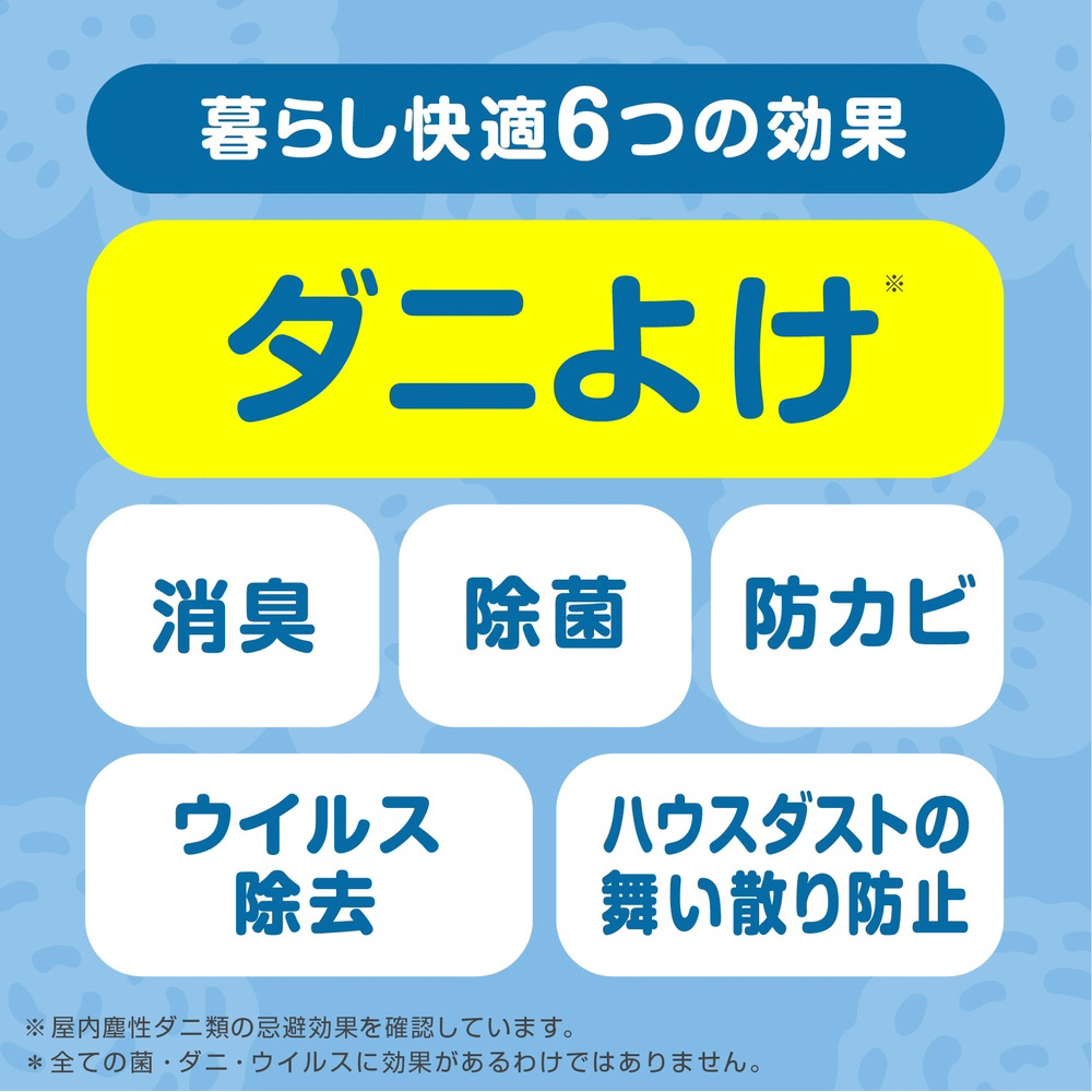 ●ダニよけ・消臭・除菌・防カビ・ウイルス除去・ハウスダスト舞い散り防止の6つの特長。