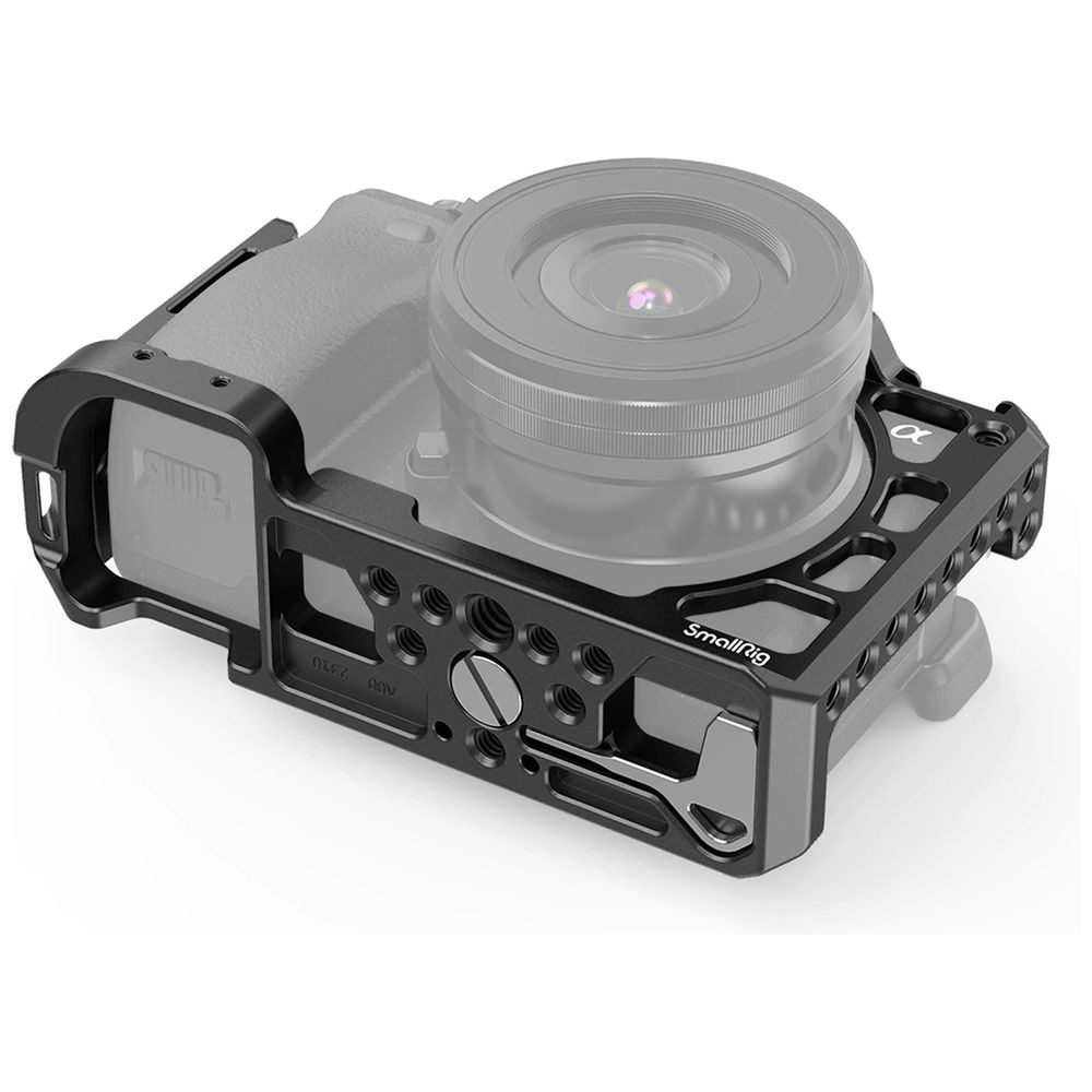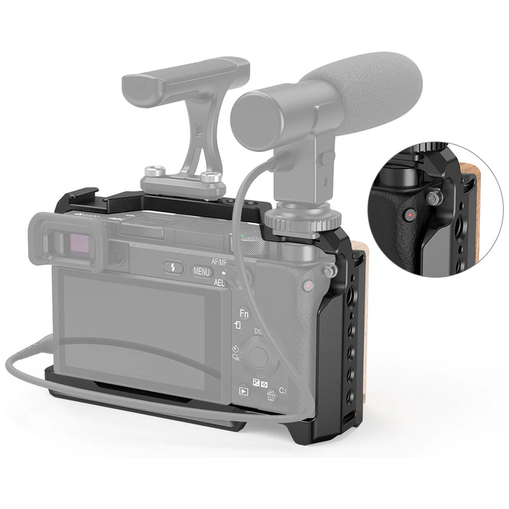 SmallRig Sony A6100/A6300/A6400/A6500専用ケージ 2310はカメラを守り、動画撮影の可能性を広げるために設計されています。ケージは底部の1/4ネジと右上のM2.5ネジでカメラを固定する為、安定性が高く、撮影中にカメラががたついたりすることはありません。また、ケージはカメラから型を取って作ったため、カメラのバッテリー交換や端子、ボタンなどの機能を干渉することはありません。
