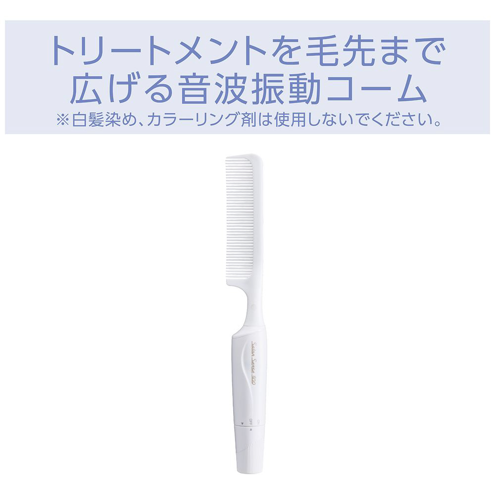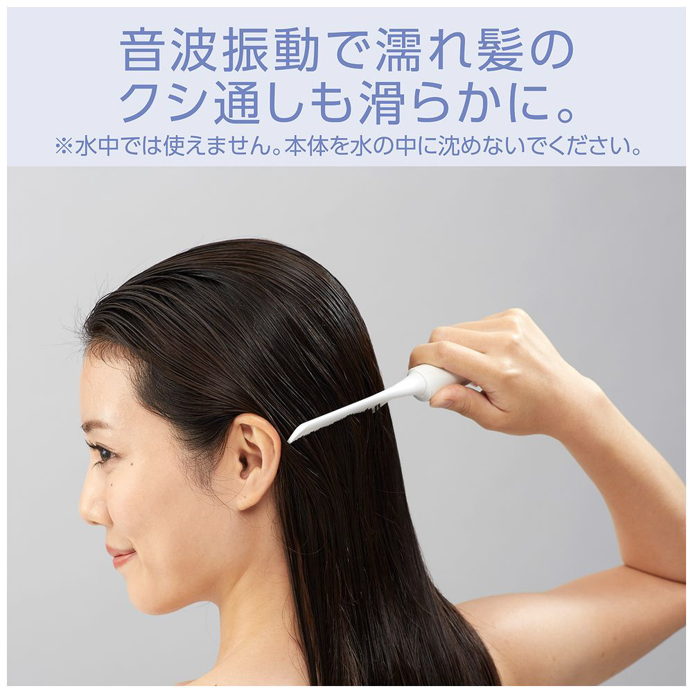 トリートメント剤をムラなく髪全体へ行き渡らせる音波振動コームです。