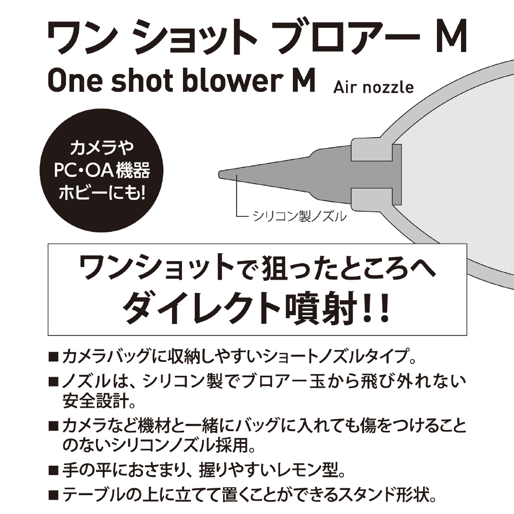 本体もノズルもソフトなシリコン製で、機材を不用意に傷付けないハンディータイプのブロアー。狙ったところへワンショット!手の中サイズのショートノズルタイプ。カメラ・PC・OA機器・ホビーまで幅広く活躍。