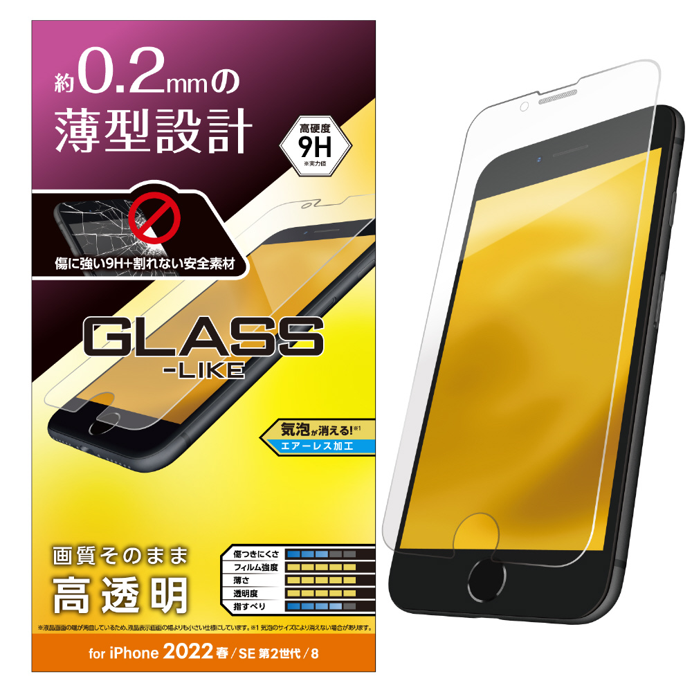 iPhone SE 第3世代/SE 第2世代/8/7/6s/6 用 ガラスライクフィルム 薄型 硬度9H 高透明 エアーレス PM-A22SFLGL