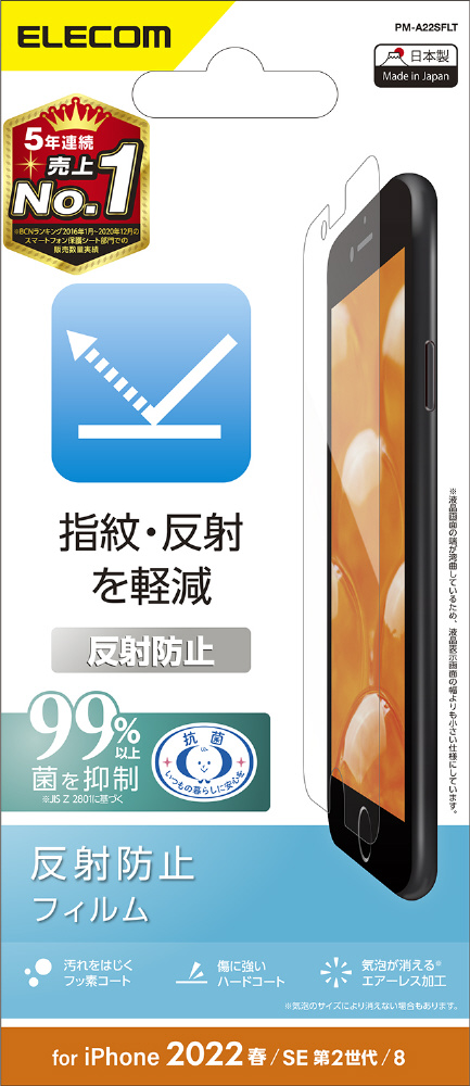 iPhone SE 第3世代/SE 第2世代/8/7/6s/6 用 フィルム 反射防止 指紋軽減 エアーレス PM-A22SFLT 【864】