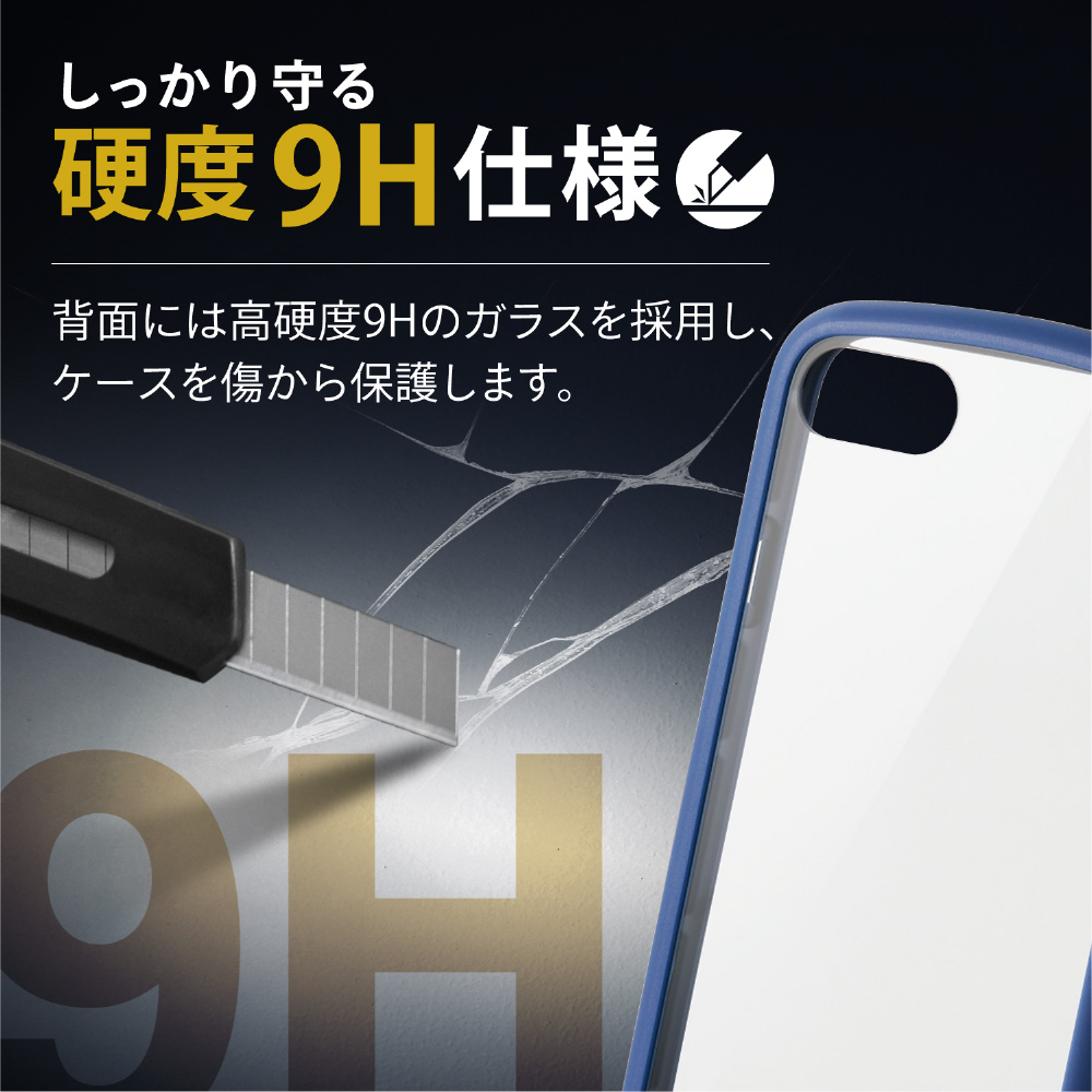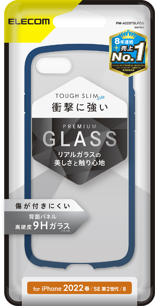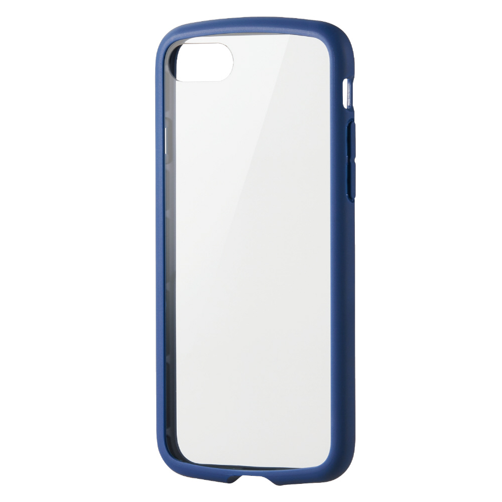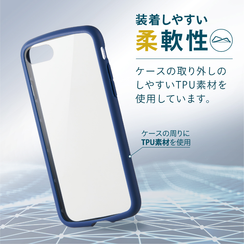 iPhoneSE(第3・2世代)/8/7 用 ケース カバー ハイブリッド 背面ガラス TOUGH SLIM LITE 耐衝撃 軽量 薄型 フレームカラー 背面クリア ワイヤレス充電可 ストラップホール付 ネイビー PM-A22STSLFCGNV 【864】
