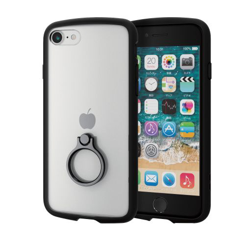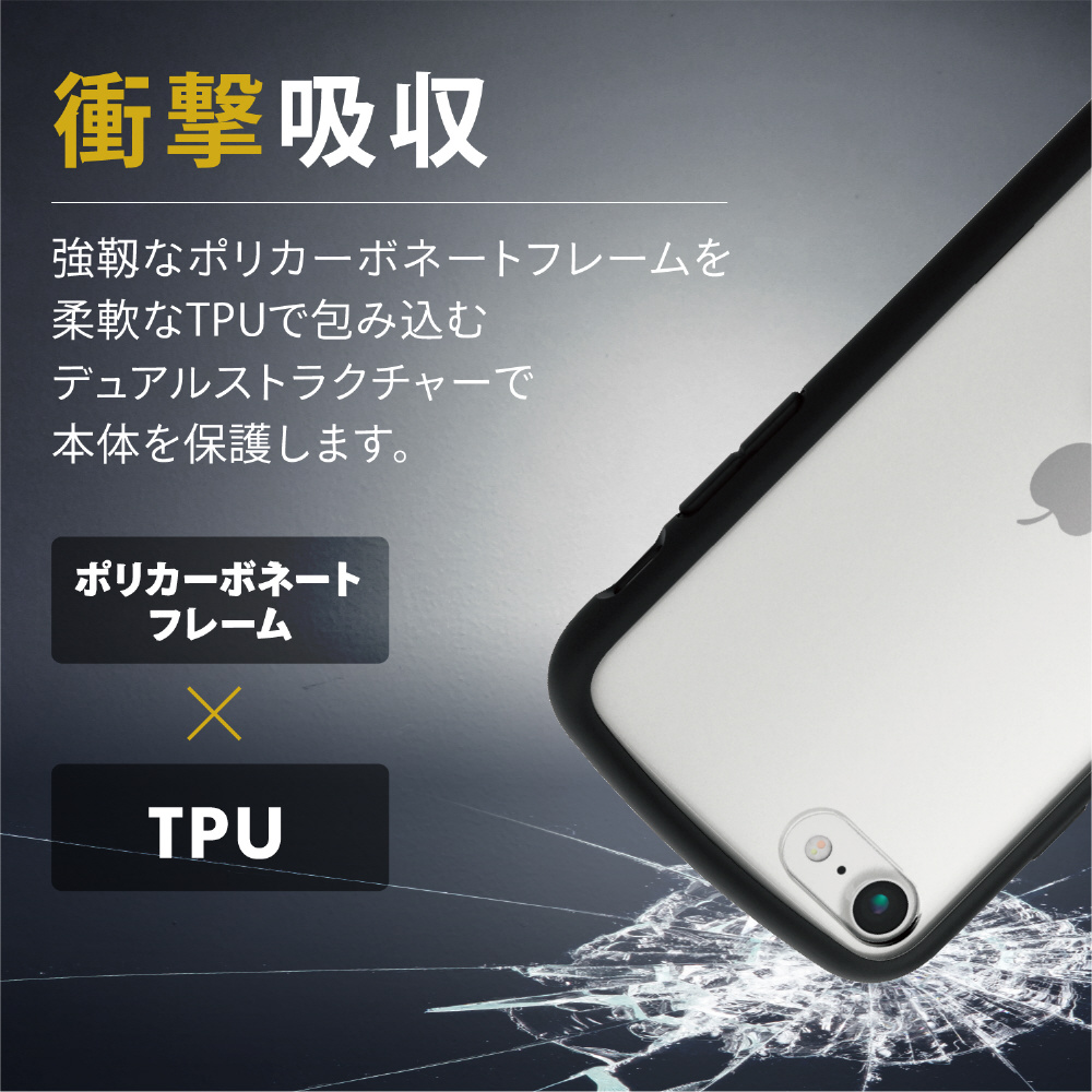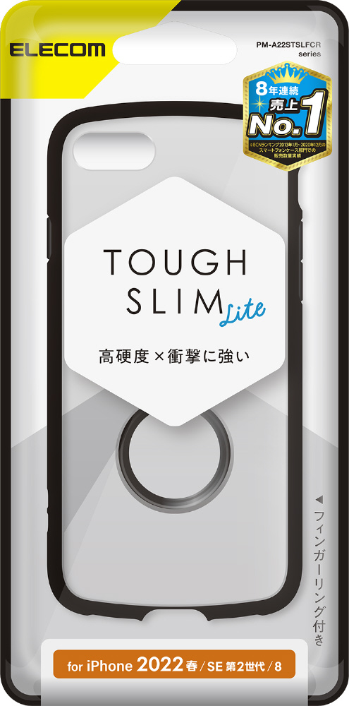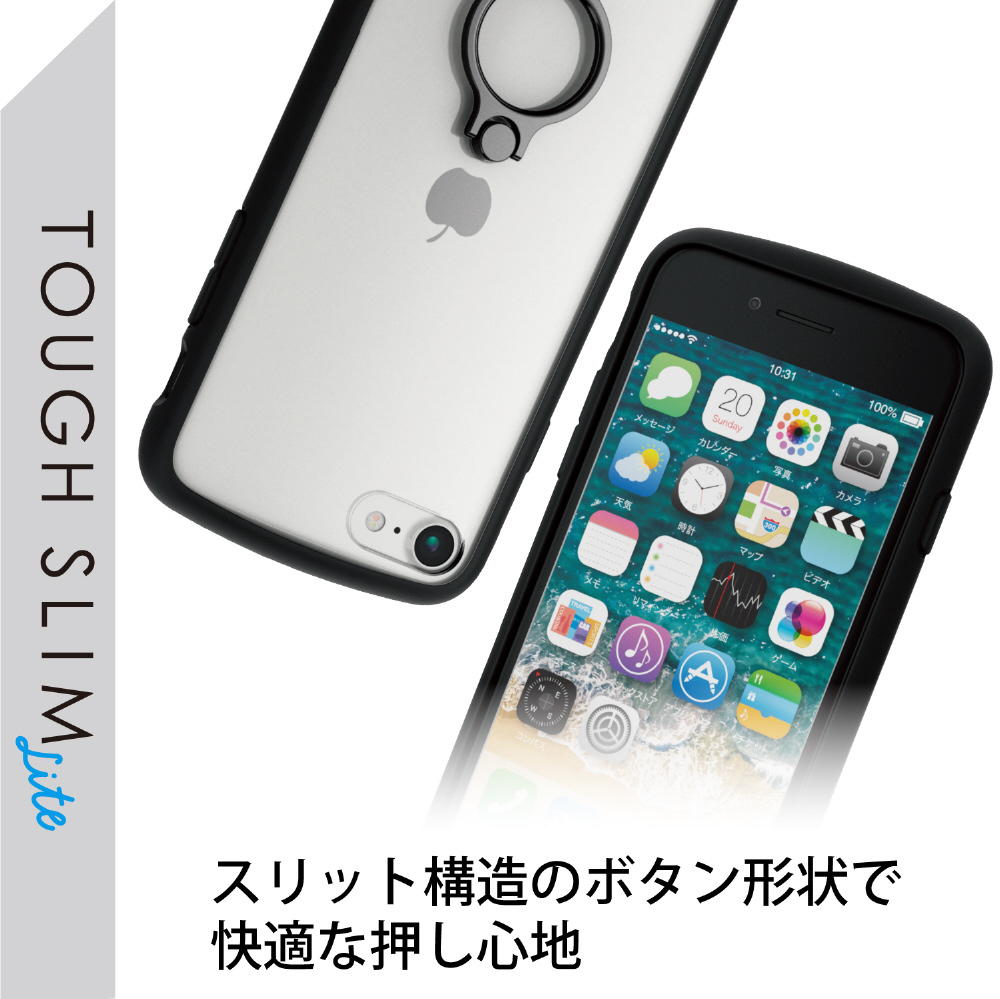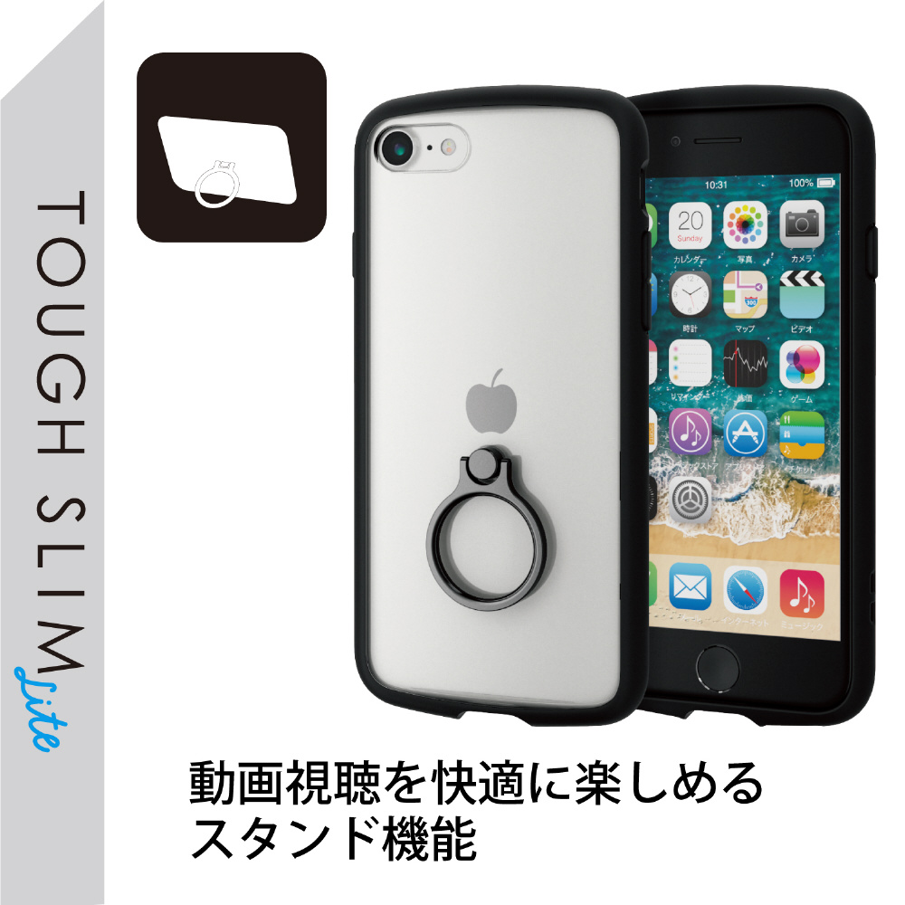iPhoneSE(第3・2世代)/8/7 用 ケース カバー ハイブリッド TOUGH SLIM LITE リング付き 耐衝撃 軽量 薄型 フレームカラー 背面クリア ストラップホール付 ブラック PM-A22STSLFCRBK