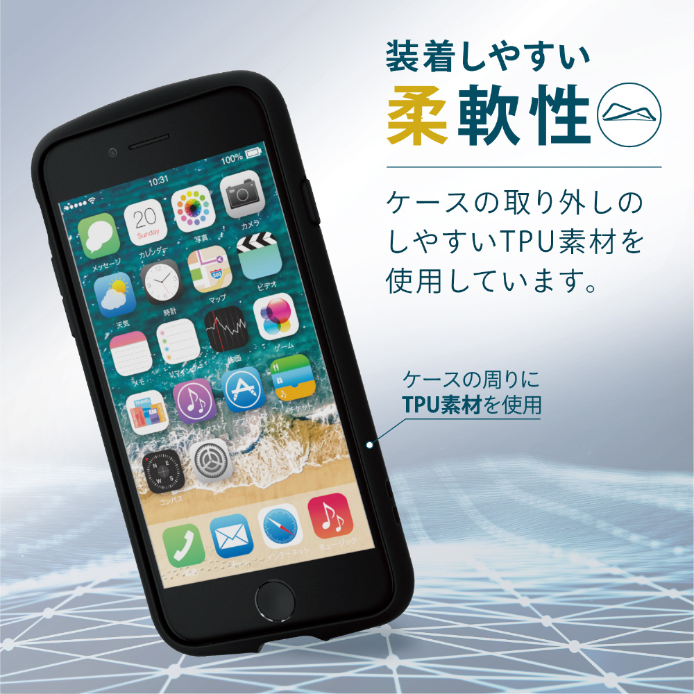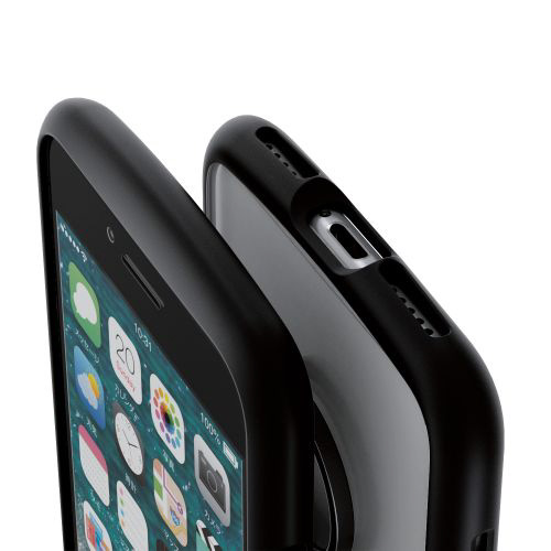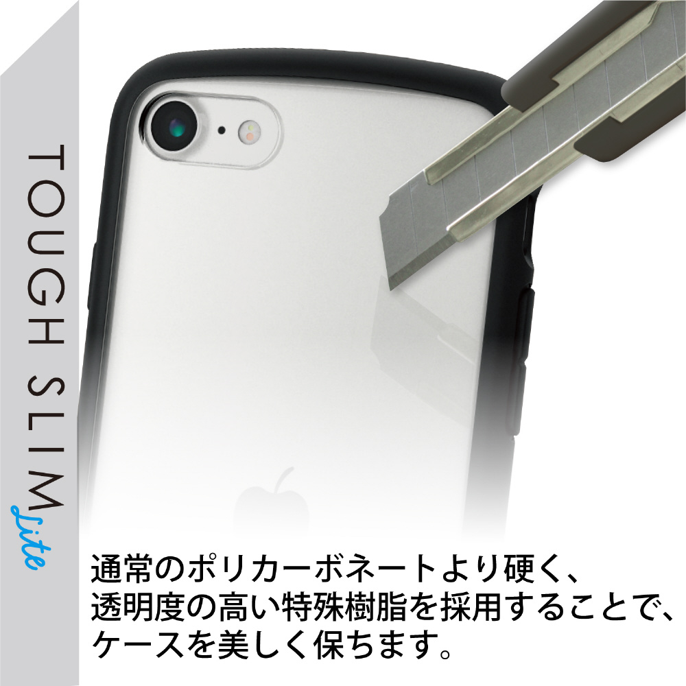 全周に配置した独自設計のエアクッションが衝撃を吸収し、背面には高硬度の特殊樹脂を採用したiPhone SE 第3世代、iPhone SE 第2世代、iPhone 8、iPhone 7用TOUGH SLIM LITEケース。