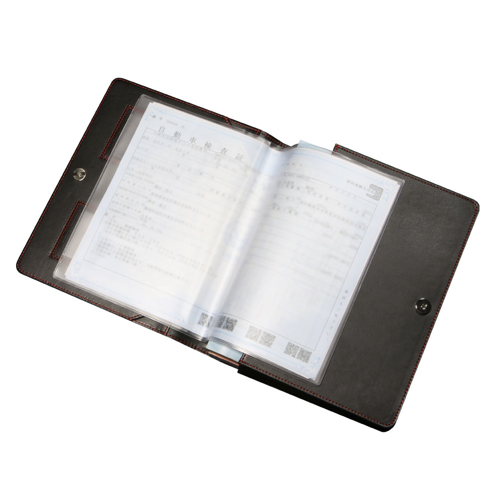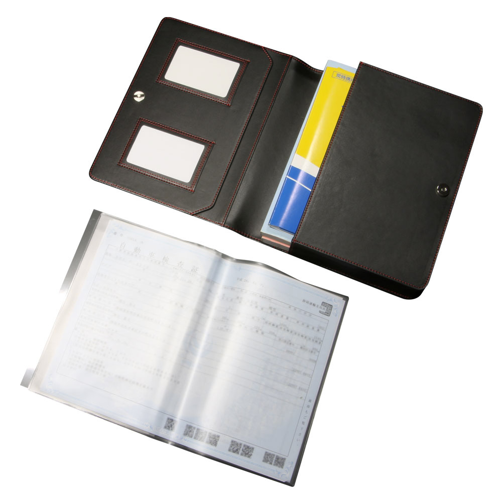 車検証ケース [カーボン調レザー/レッドステッチ] 大容量 車検証入れ 名刺ポケット&留めボタン付 ZZZS12